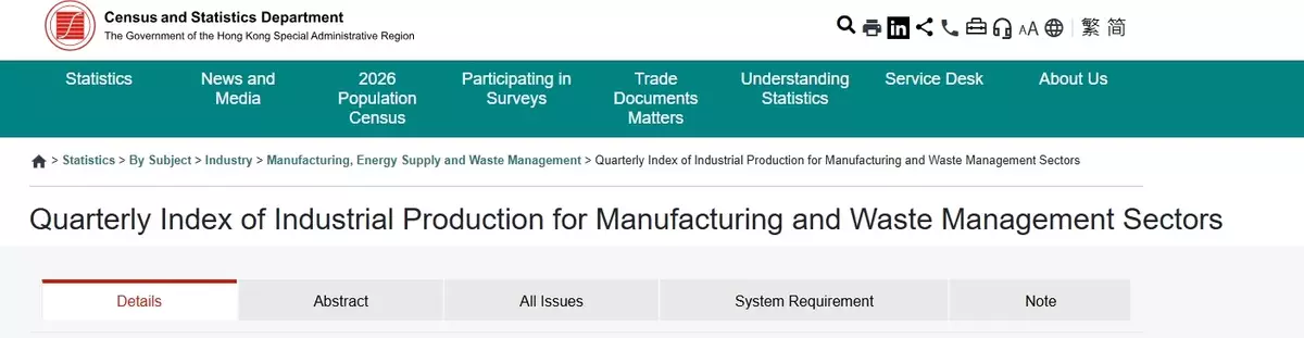 The revised figures on indices of industrial production and producer price indices for manufacturing and waste management sectors for the third quarter of 2025 will be released at the website of the C&SD (www.censtatd.gov.hk/en/page_8000.html) and relevant publications of the Department starting from January 19, 2026.