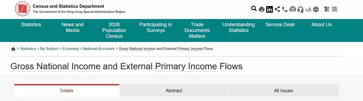 The Census and Statistics Department (C&SD) released today (December 15) the preliminary statistics on Hong Kong's Gross National Income (GNI) and related figures for the third quarter of 2025.