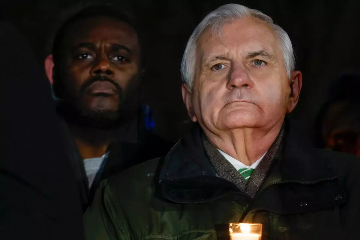 People hold candles during a vigil, Sunday, Dec. 14, 2025, in Providence, R.I., for those injured or killed during the Saturday shooting on Brown University campus. (AP Photo/Steven Senne)