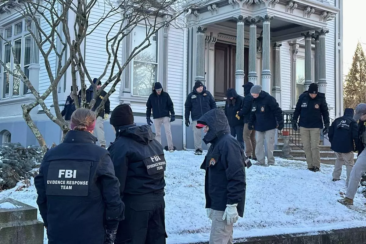 FBI officials search an area of Providence, R.I., Monday, Dec. 15, 2025. (AP Photo/Leah Willingham)
