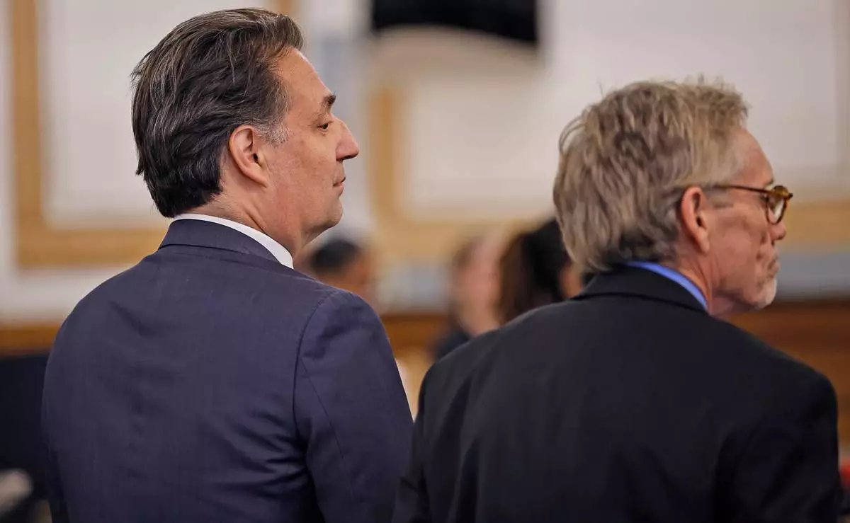 Brian Walshe, left, and lawyer Larry Tipton listen as the jury is polled about their guilty verdict of the first degree murder of his wife Ana in 2023 by a Norfolk Superior Court jury in Dedham, Mass., on Monday Dec. 15, 2025. (Greg Derr/The Patriot Ledger via AP, Pool)