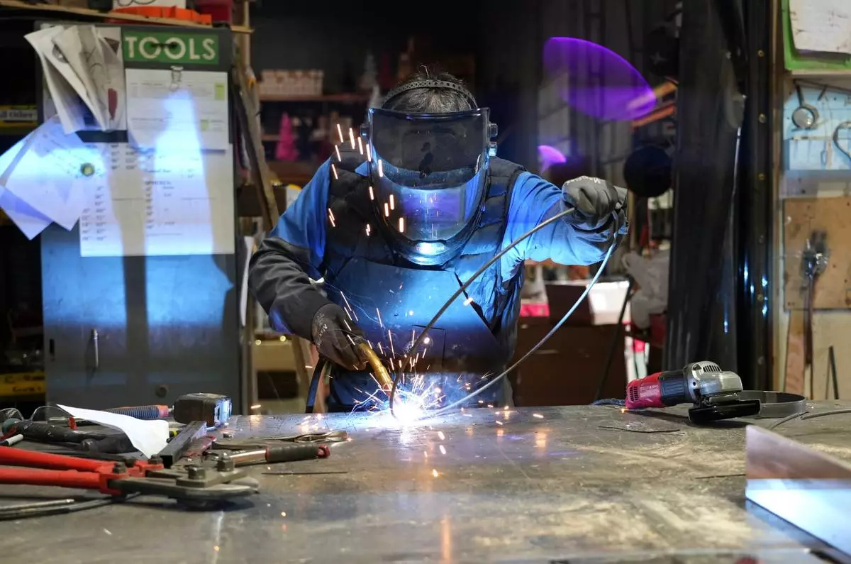Juan Gonzalez assembles an artificial Christmas wreath at Lee Display's warehouse, in Fairfield, Calif., Tuesday, Dec. 9, 2025. (AP Photo/Terry Chea)