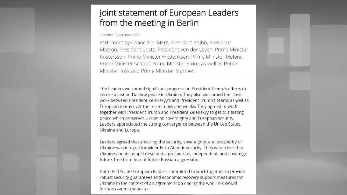The statement was signed by leaders of Germany, France, the United Kingdom, Italy, Poland, Finland, Norway, Sweden, the Netherlands, and the European Union after two days of talks regarding a peace plan for ending the Ukrainian crisis in Berlin, Germany.