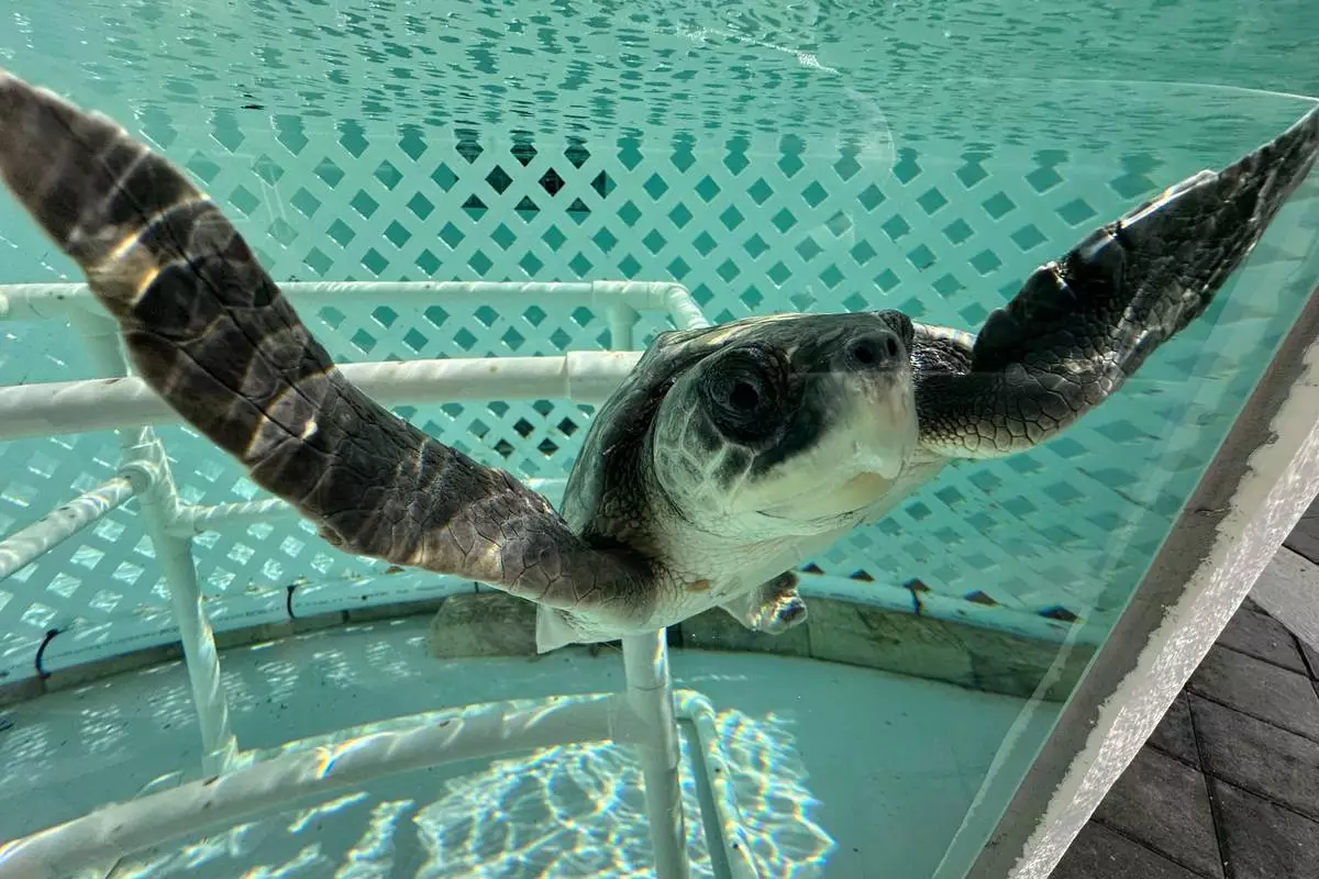A Kemps Ridley sea turtle swims in a tank at Loggerhead Marinelife Center Monday, Dec. 15, 2025, in Juno Beach, Fla. (AP Photo/Cody Jackson)