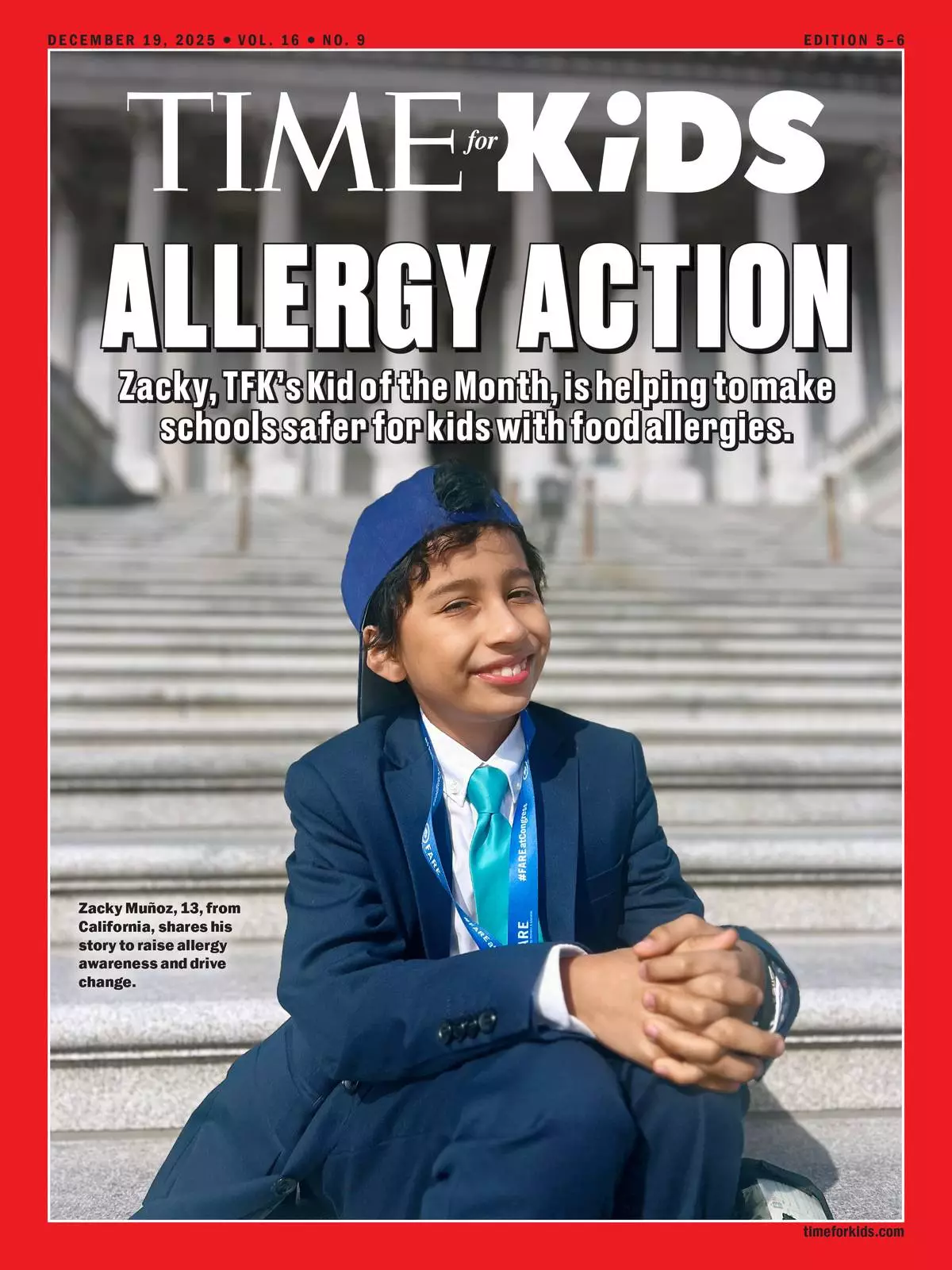 Zacky on the cover of TIME for Kids Magazine recognized for his impact on US policy, especially for kids with food allergies. Zacky is changing the landscape for kids with food allergies in schools.