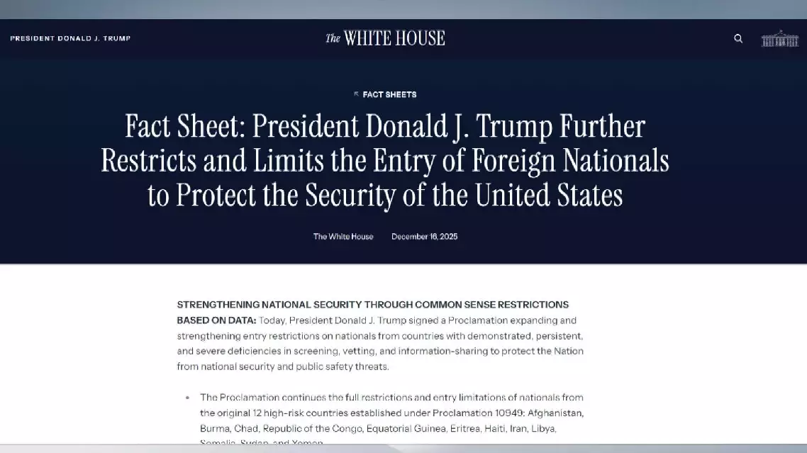 The latest move is part of the Trump administration's ongoing efforts to tighten U.S. entry standards for foreign nationals, following a shooting of two National Guard members in Washington, D.C. during Thanksgiving week. The suspect was identified as a 29-year-old Afghan who had obtained asylum in April.