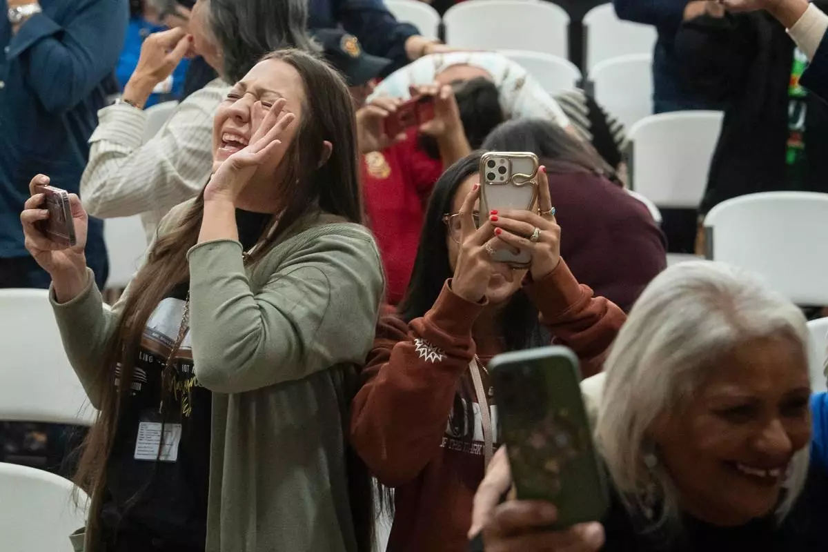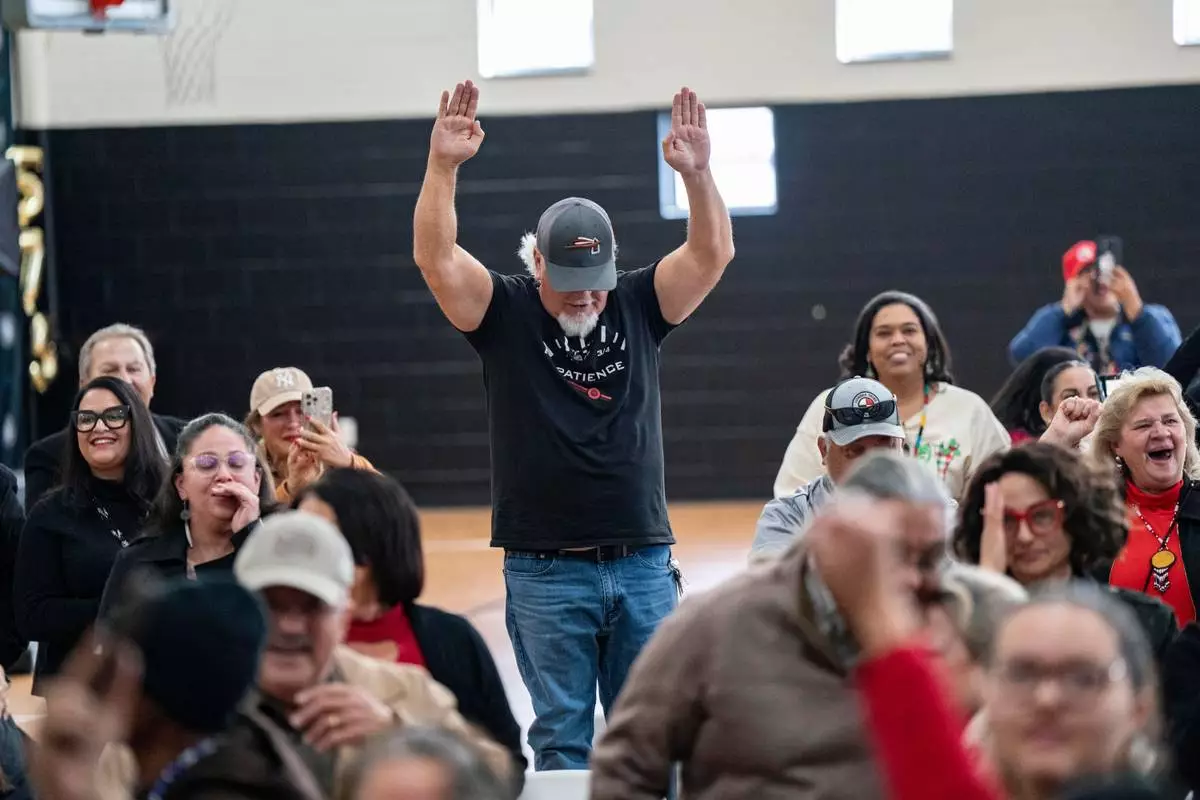 Over 200 Lumbee members gathered in a gymnasium in Pembroke, North Carolina, to watch the final Senate vote on television. They celebrated with shouts, raised hands and applause as the unofficial tally indicated the bill would receive final congressional approval.
