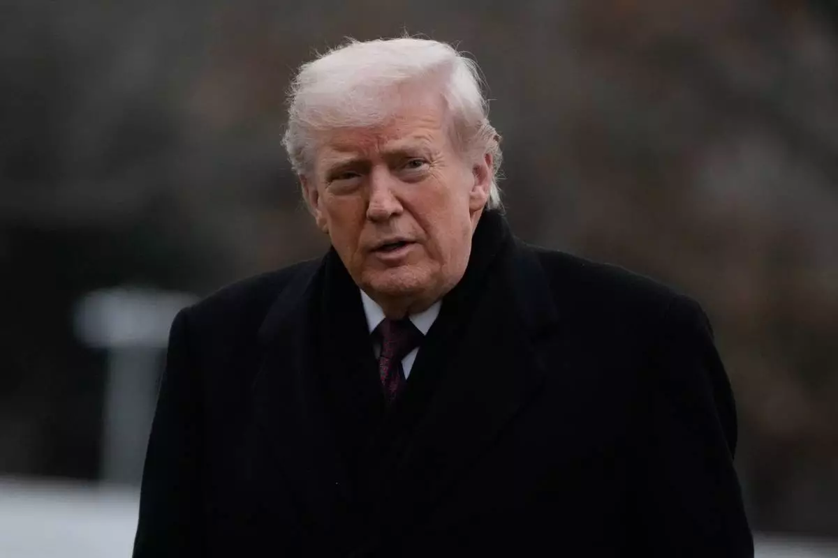 President Donald Trump looks over after stepping off Marine One on the South Lawn of the White House, Wednesday, Dec. 17, 2025, in Washington. (AP Photo/Mark Schiefelbein)
