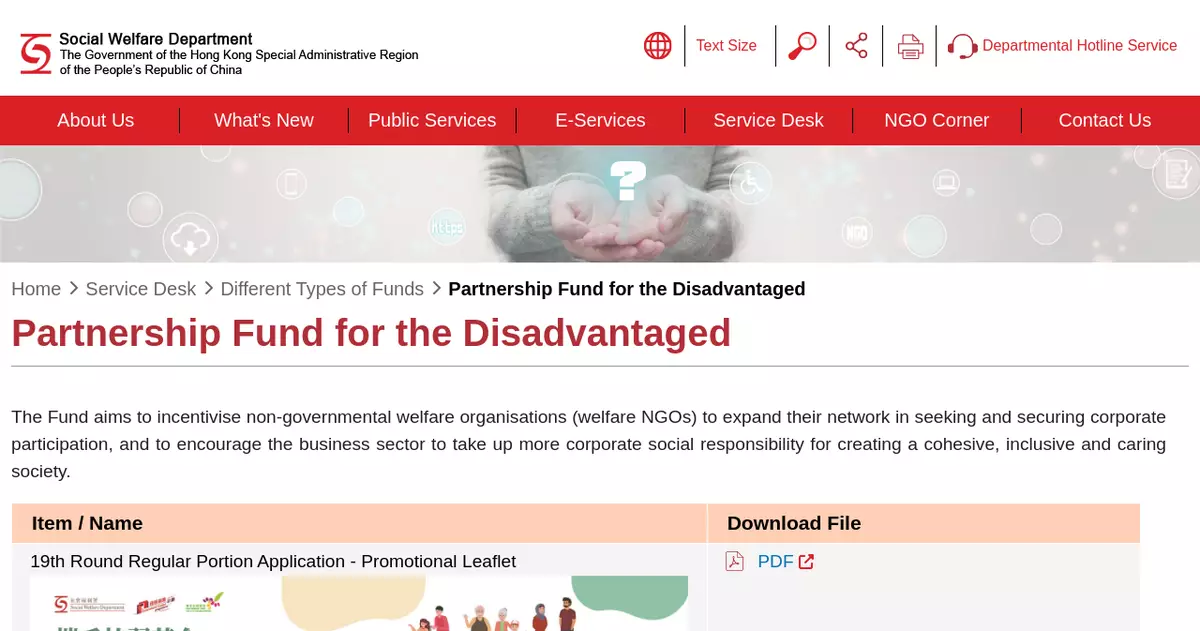 Regular Portion: www.swd.gov.hk/en/svcdesk/funds/partnership/