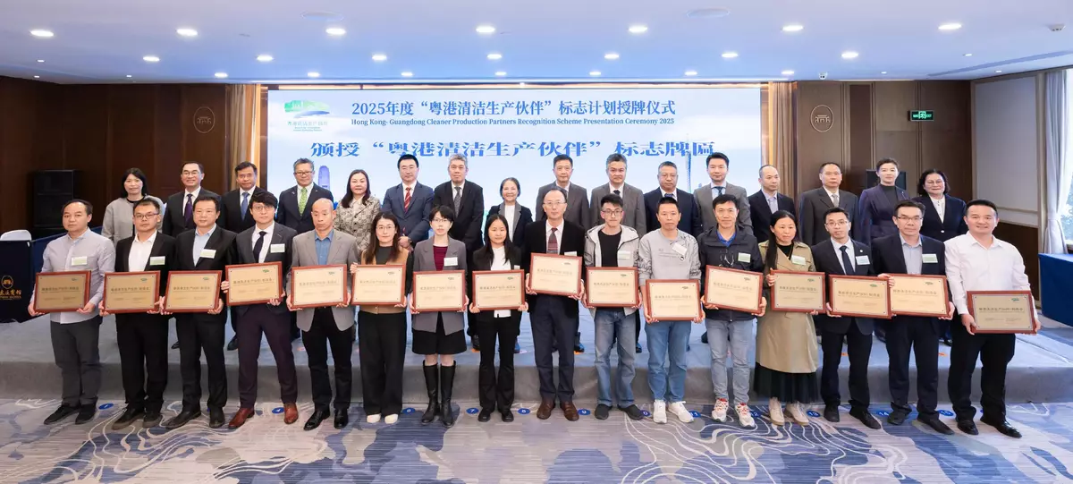 After the JWGCP meeting, the 2025 award presentation ceremony for the Hong Kong-Guangdong Cleaner Production Partners Recognition Scheme was held to commend 165 enterprises that have actively pursued cleaner production. Of these, 34 Hong Kong-owned manufacturing enterprises were commended as "Excellent Partners" while 112 were commended as "Partners". Other commended enterprises included three sourcing enterprises and 16 environmental technology service providers.