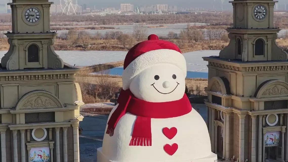 Iconic giant snowman unveiled in China's "ice city" ahead of winter tourism peak
