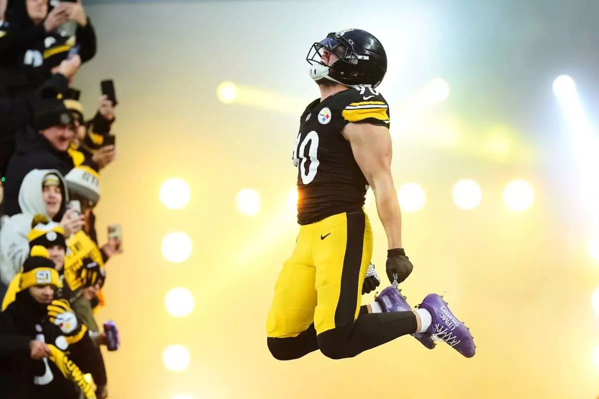 Pittsburgh Steelers linebacker T.J. Watt enters the field before an NFL football game against the Buffalo Bills, Nov. 30, 2025, in Pittsburgh. (AP Photo/Matt Freed, File)