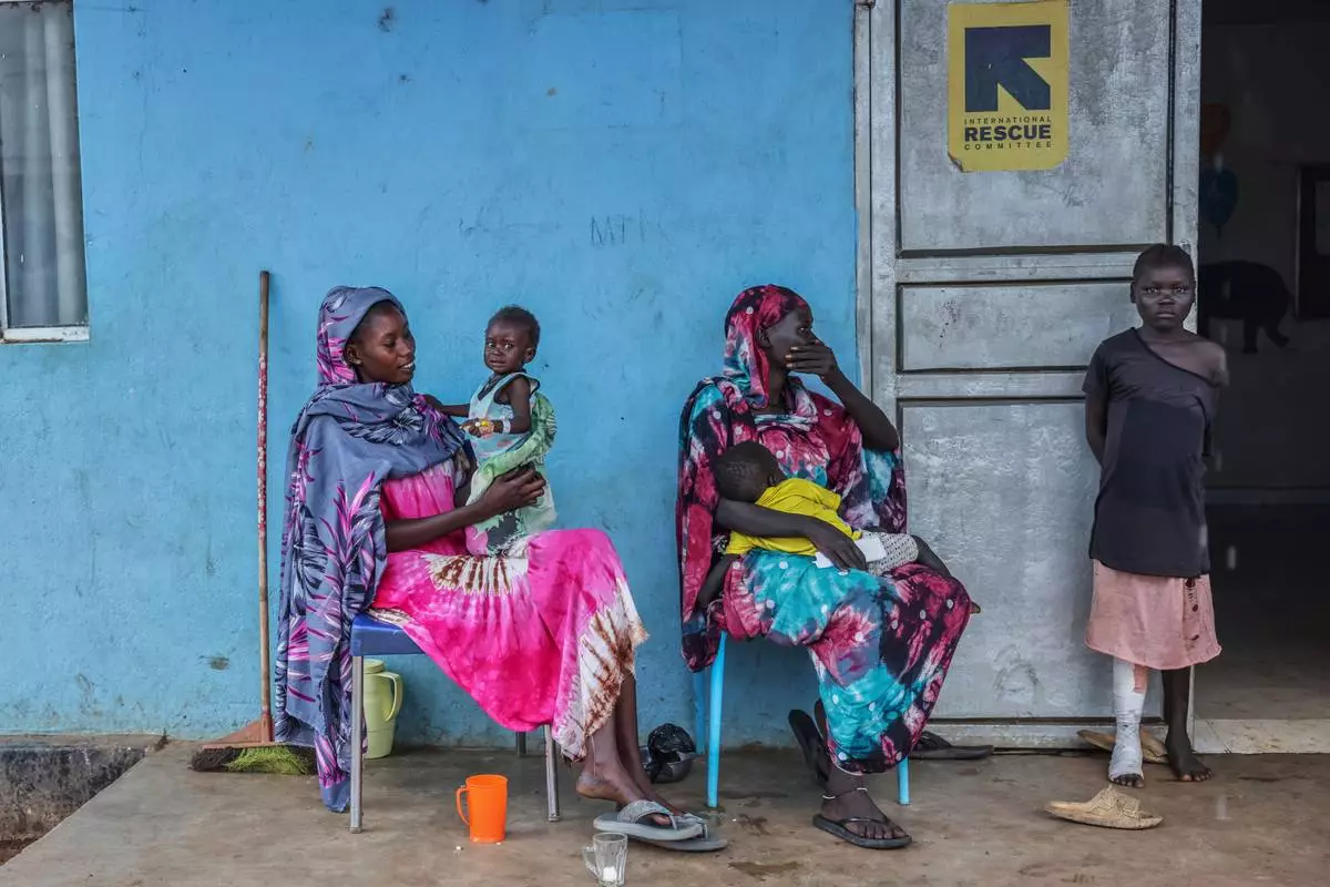 Patients sit outside the malnutrition ward of Bunj Hospital in Maban, South Sudan, Aug. 19, 2025. (AP Photo/Caitlin Kelly, File)