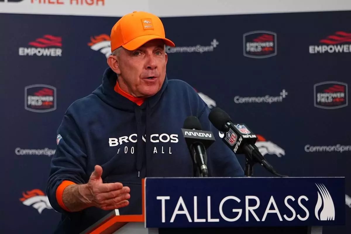 Denver Broncos head coach Sean Payton answers a question after an NFL football game against the Green Bay Packers Sunday, Dec. 14, 2025, in Denver. (AP Photo/Jack Dempsey)