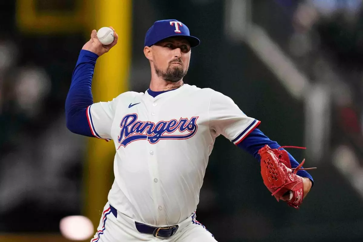 FILE - Texas Rangers relief pitcher Shawn Armstrong throws to the Arizona Diamondbacks in the eighth inning of a baseball game, Aug. 12, 2025, in Arlington, Texas. (AP Photo/Tony Gutierrez, File)