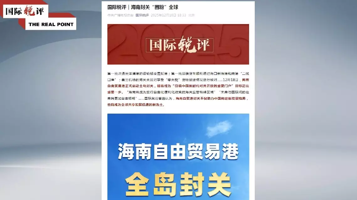 This island-wide special customs operations represent another significant milestone in China's reform and opening-up process. It serves as a landmark measure demonstrating China's unwavering commitment to expanding high-level opening-up and promoting the development of an open global economy.