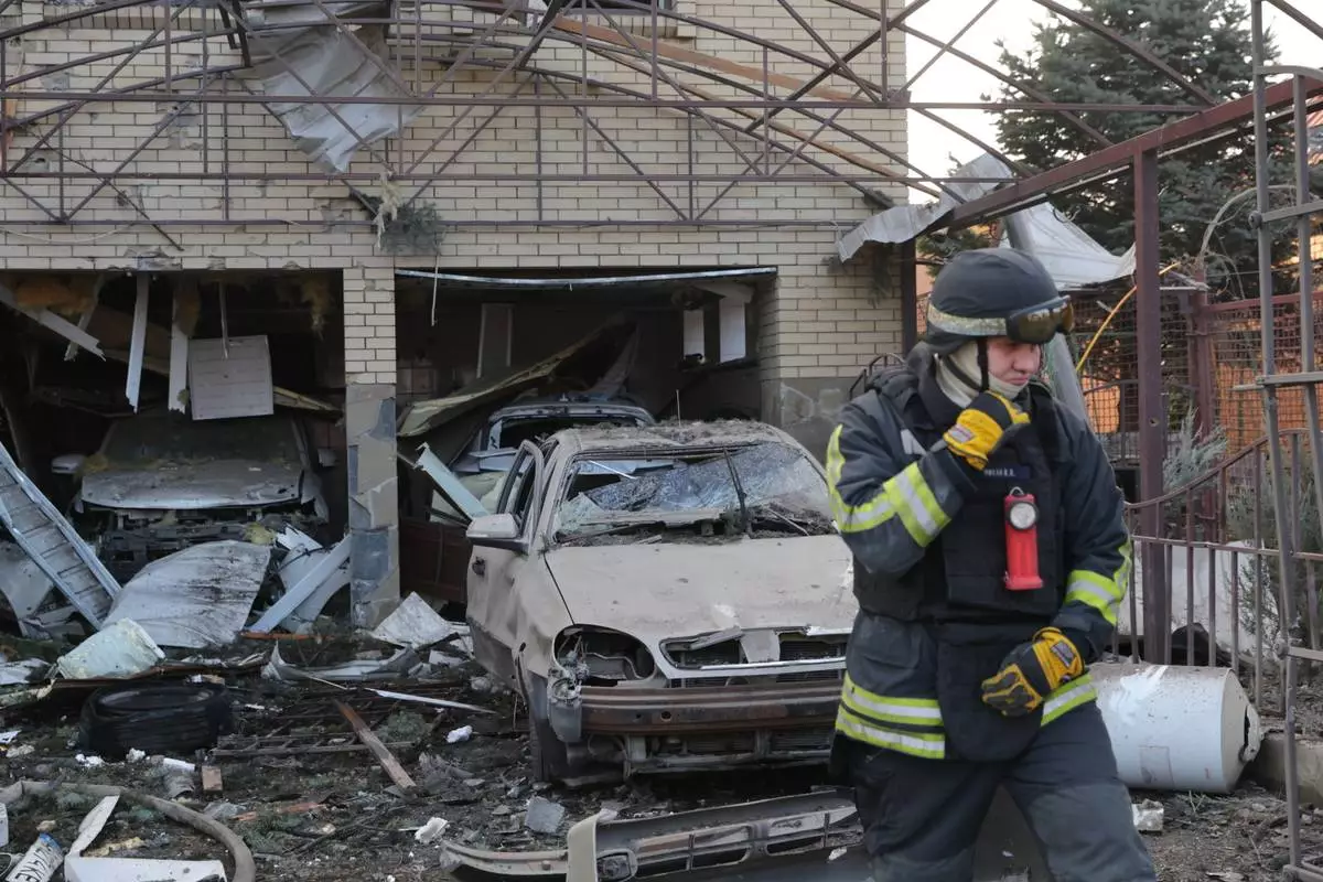 A rescue worker walks in front of a residential house damaged after a Russian attack on Zaporizhzhia, Ukraine, Friday, Dec. 19, 2025. (AP Photo/Kateryna Klochko)