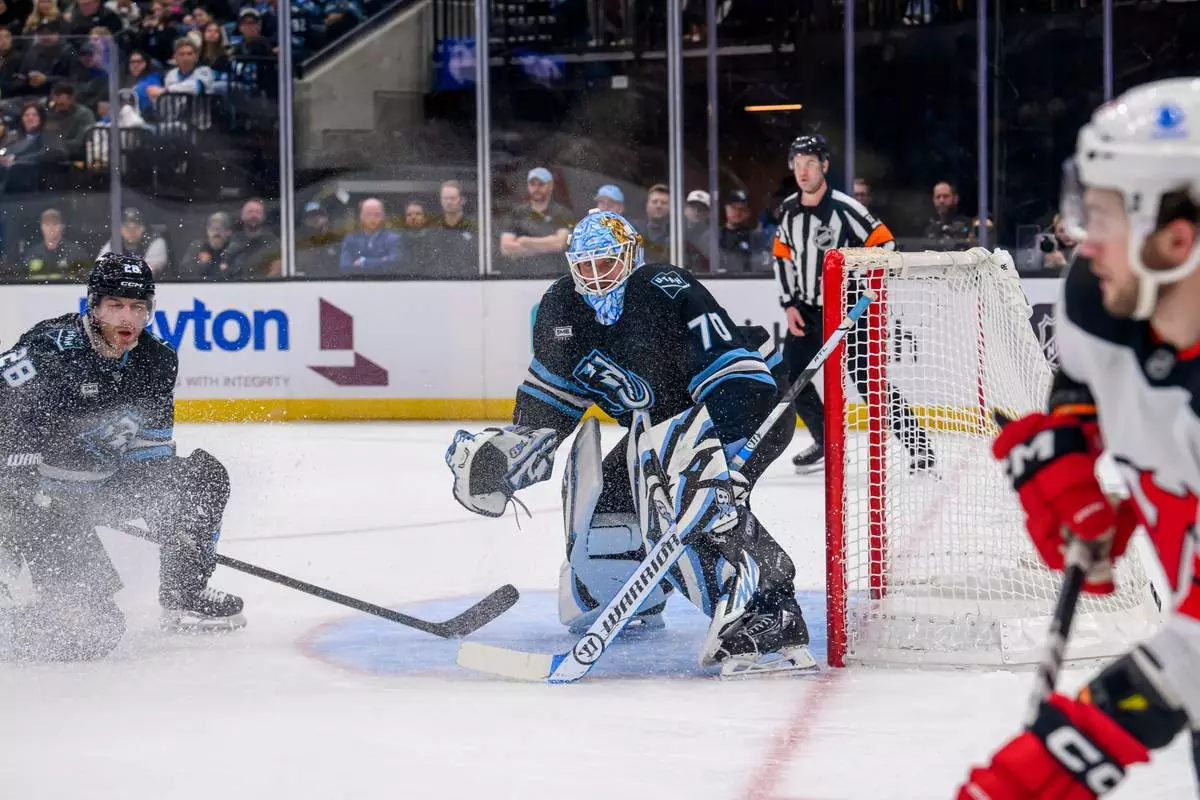 The Devils fought off a frantic power play and an empty net — a 6-on-4 Utah advantage — over the final 1:21 to get the victory.