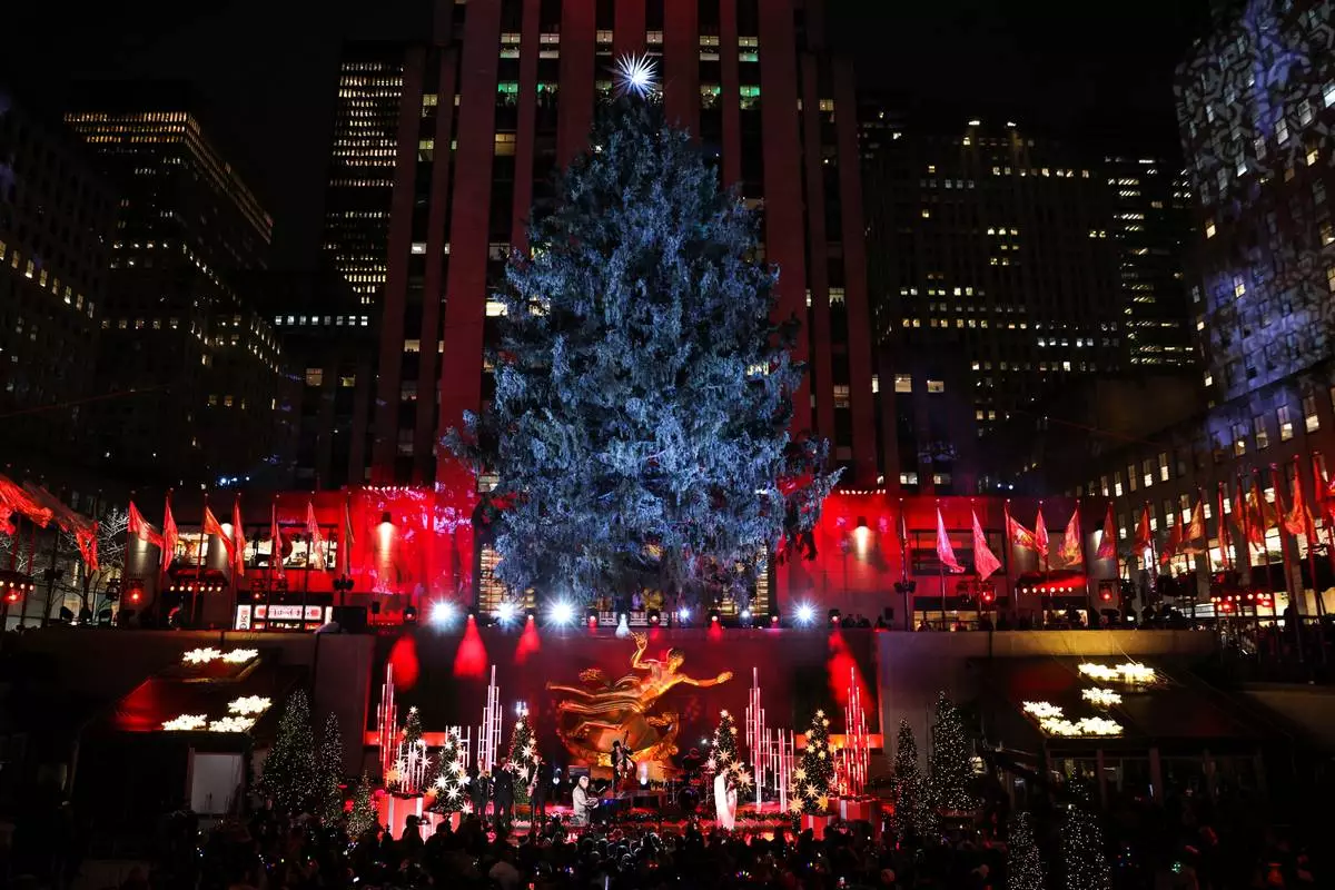 FILE - Katherine McPhee and David Foster perform during the 90th annual Rockefeller Center Christmas tree lighting ceremony, Wednesday, Nov. 30, 2022, in New York. (AP Photo/Julia Nikhinson, File)