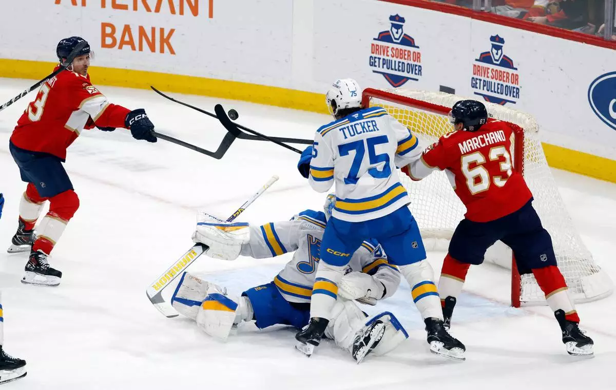 SUNRISE, Fla (AP) — The St. Louis Blues got a pair of goals from Jake Neighbours and Robert Thomas in a 6-2 win over the Florida Panthers on Saturday night.