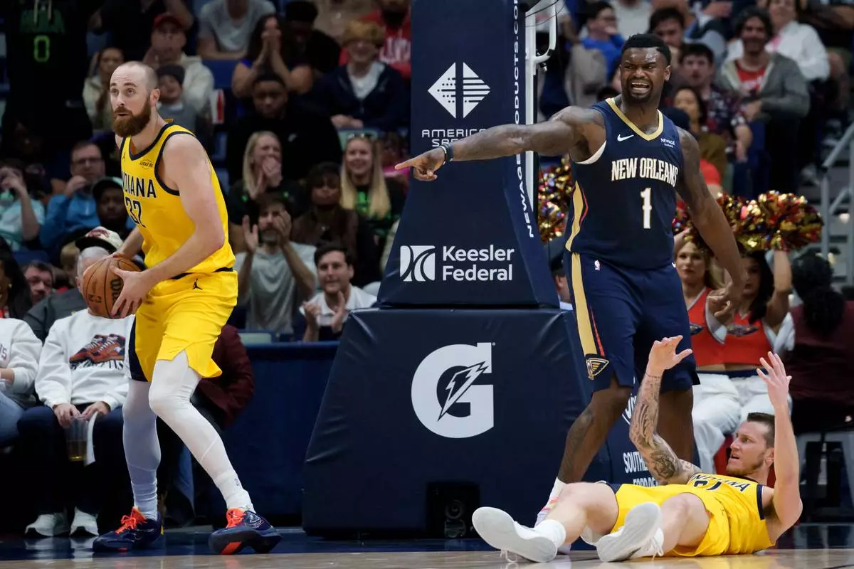 NEW ORLEANS (AP) — Zion Williamson came off the bench for the third consecutive game and matched his season high with 29 points as the New Orleans Pelicans beat the Indiana Pacers 128-109 on Saturday night for their season-high fourth straight win.