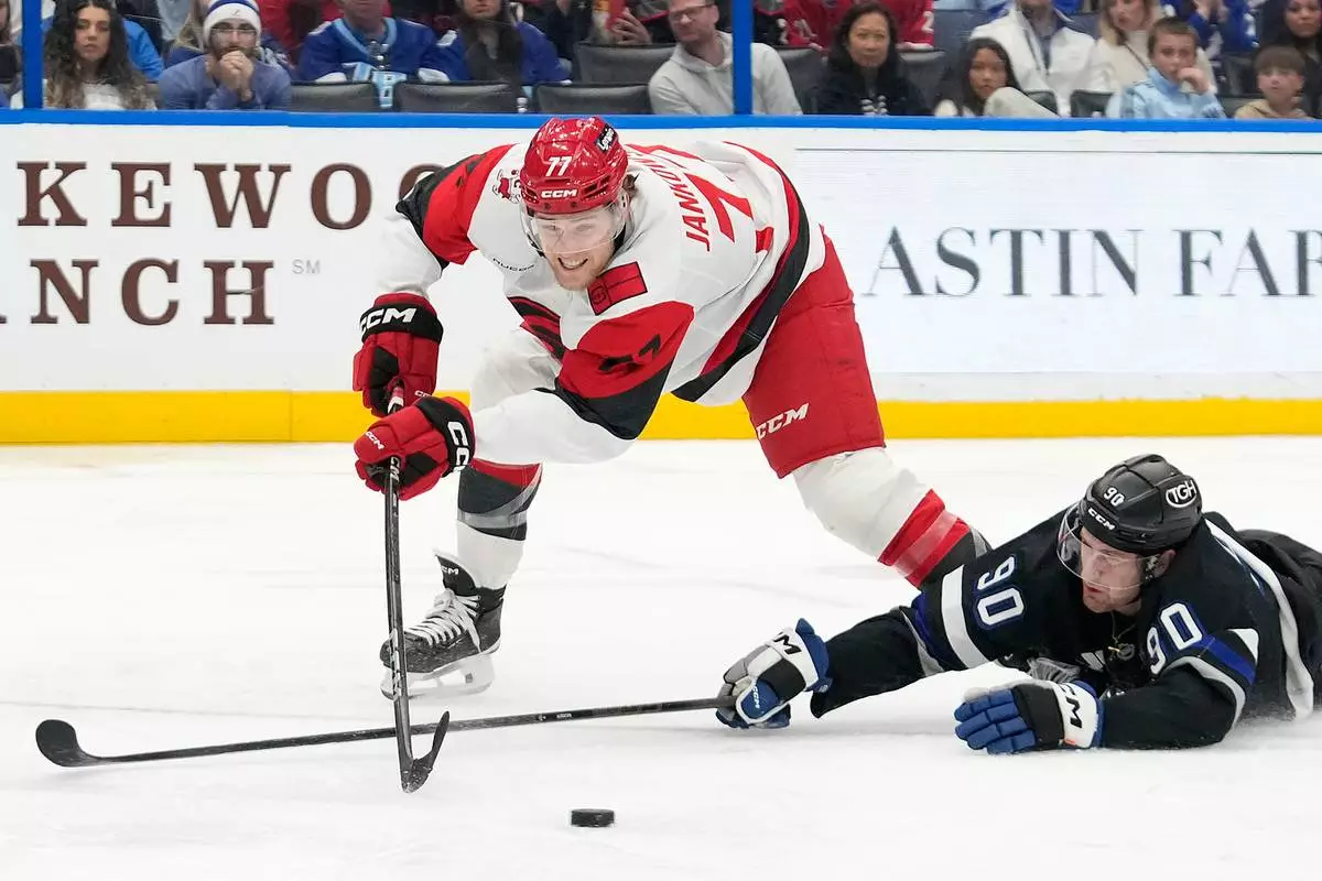 Carolina placed leading goal scorer Seth Jarvis on injured reserve before the game. He left Friday’s game against Florida when he was tripped up and crashed into the post.