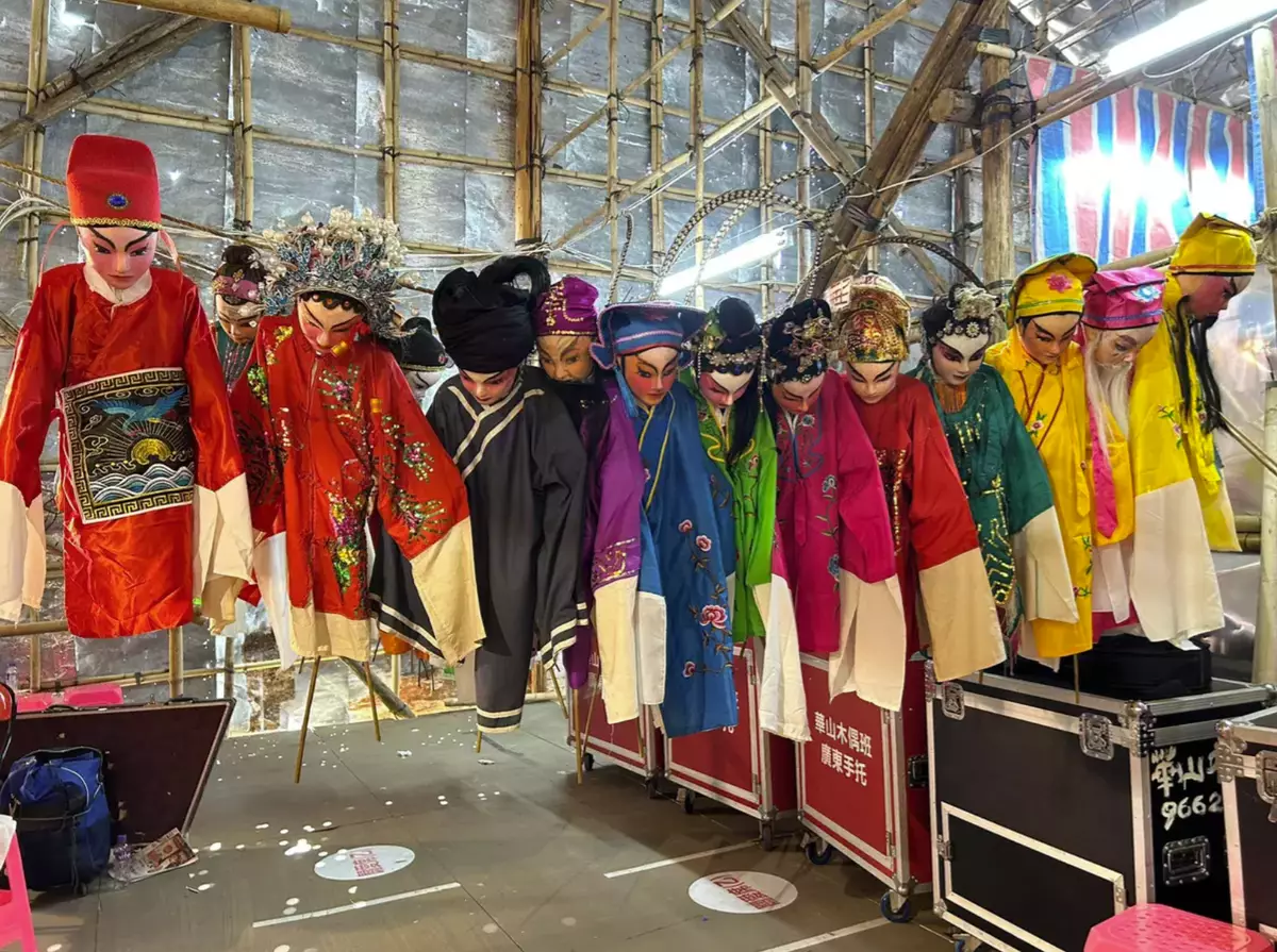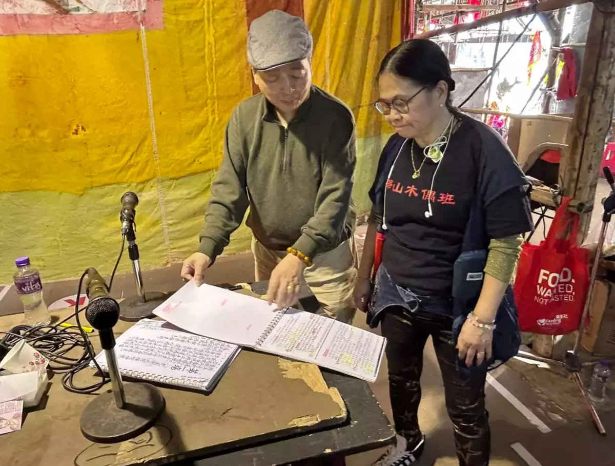 As for the troupe members, they have also devoted themselves wholeheartedly during the festival performance. No matter it's the break of each performance, or the leisure time for lunch and dinner, they would seize every second to actively discuss how to better convey the plots and the protagonist's emotions of the play to the audience via manipulating puppets, singing and playing musical instruments, allowing them to feel the artistic charm of puppet Cantonese opera.