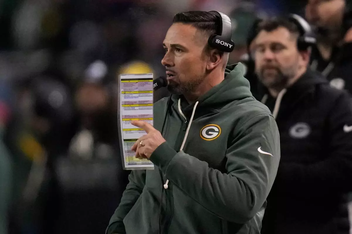 Green Bay Packers head coach Matt Lafleur during the first half of an NFL football game against the Chicago Bears Saturday, Dec. 20, 2025, in Chicago. (AP Photo/Erin Hooley)
