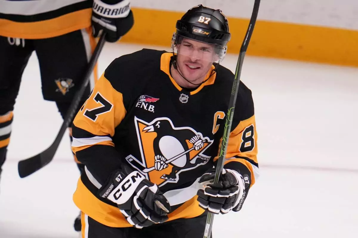 PITTSBURGH (AP) — Sidney Crosby broke Mario Lemieux’s franchise scoring record with a goal and an assist in the first period of the Pittsburgh Penguins' game against the Montreal Canadiens on Sunday night.