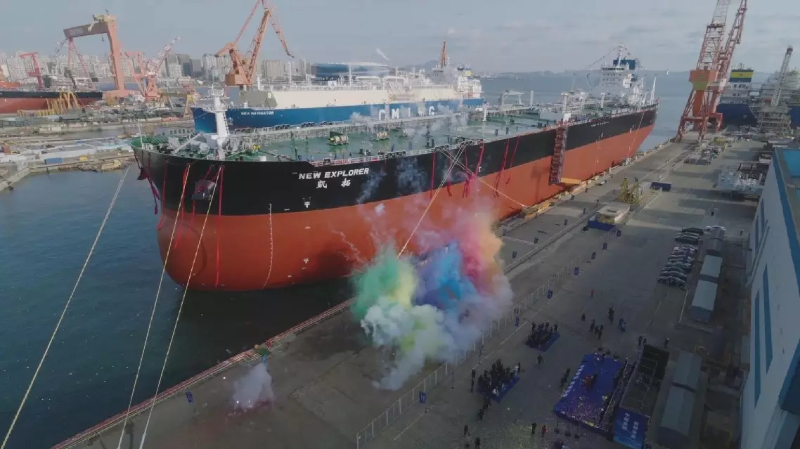The giant vessel, known as Kai Tuo, is developed by the CSSC Dalian Shipbuilding Industrial Development Co., LTD., and measures 333 meters in length and 60 meters in width, with a loading capacity of 2.1 million barrels of crude oil.