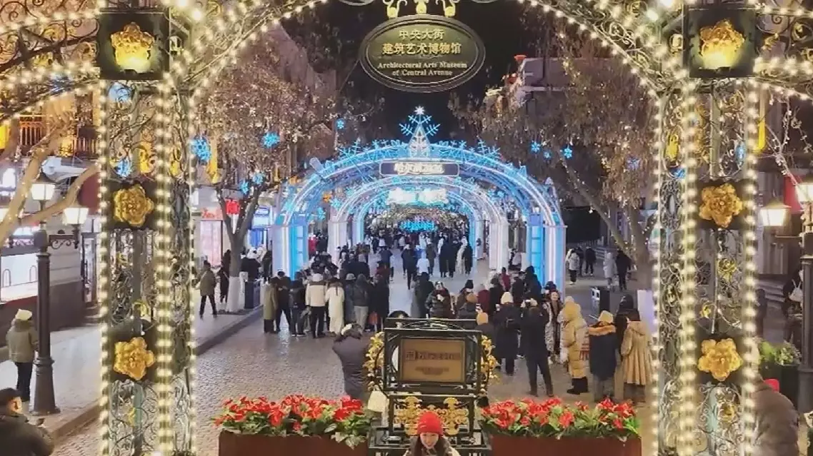 One popular attraction among tourists is the dazzling "flying horse" installation, where a glowing horse with wings that appear to flutter under advanced lighting effects soars above a river of shimmering starry lights. This year, Central Street in Harbin has introduced new "warming artifacts", rows of outdoor heaters with flickering flames. They draw tourists from across the country together, as visitors gather around to warm themselves by the fire while exchanging travel tips, warming both their bodies and bringing them closer together.