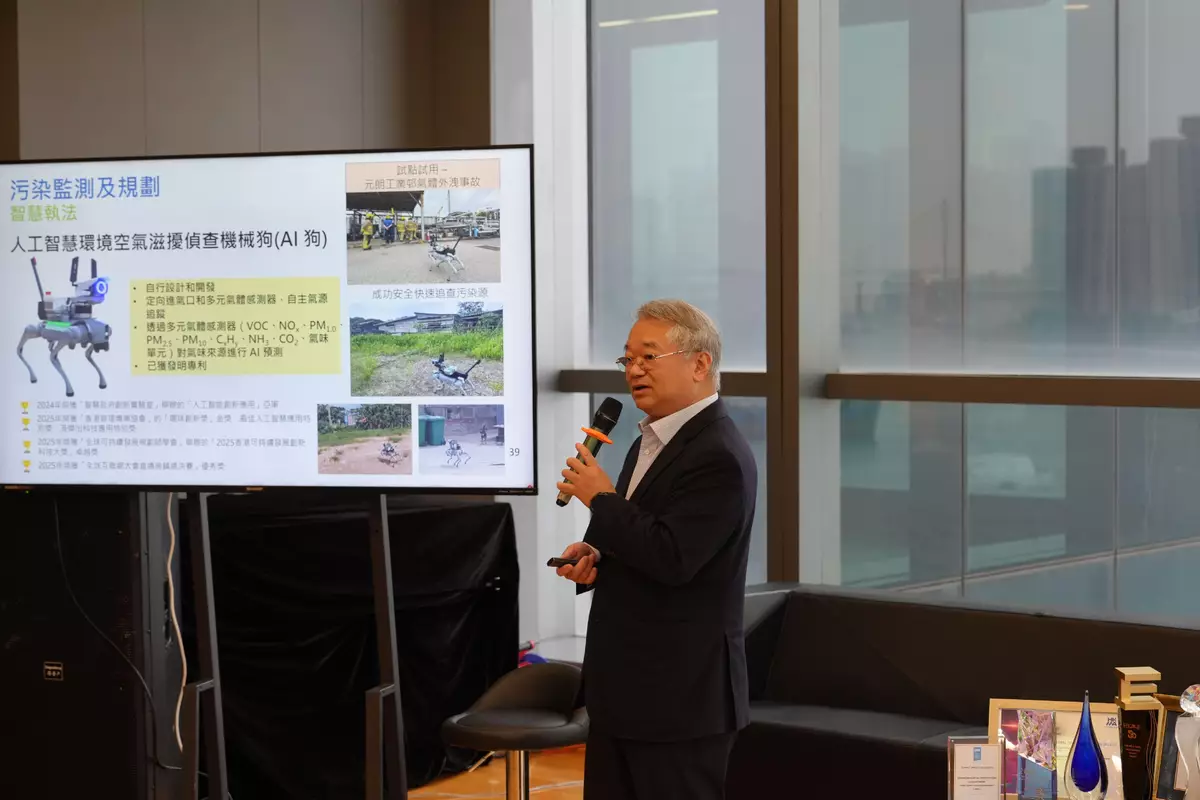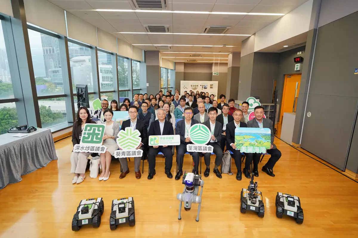 Dr Chui met with the District Officer (Tsuen Wan), Mr Billy Au, the District Officer (Kwai Tsing), Mr Edric Leung, the Acting District Officers (Sham Shui Po), Miss Stella Wong and Miss Agnes Chan; and around 40 members of District Council from the three districts. They reviewed the progress in improving water quality and odour along both sides of Victoria Harbour, particularly in Tsuen Wan, Kwai Tsing and Sham Shui Po. On-site demonstrations were given of innovative multi-dimensional monitoring technologies across sea, land, and air platforms, including an "Artificial Intelligence Environmental Air Nuisance Investigation Robot Dog" (AI Dog), "Ground Penetrating Radar", "Drone for Sampling and Monitoring", and "Unmanned Sampling Boat", etc. The attending councillors gave highly positive feedback on the environmental improvements in the relevant areas.