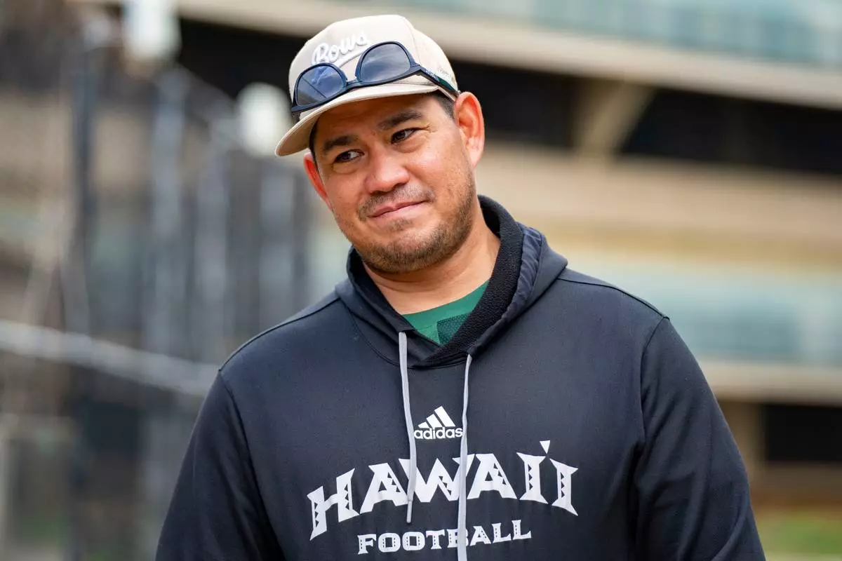 Hawaii head coach Timmy Chang smiles during an interview, Tuesday, Dec. 16, 2025, in Honolulu. (AP Photo/Mengshin Lin)