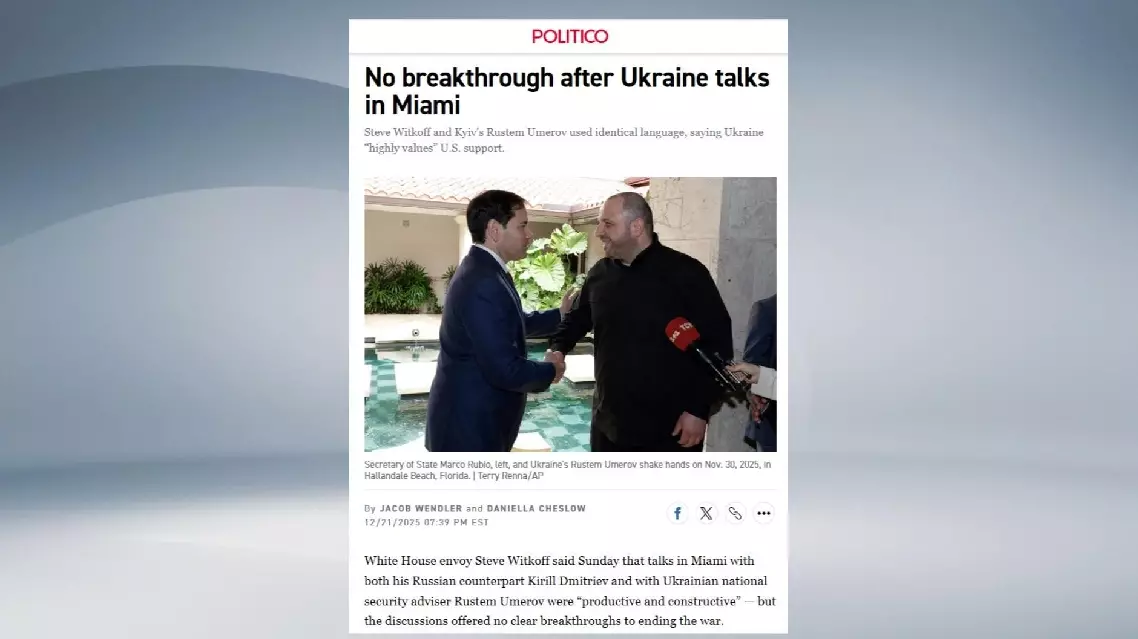 The U.S. newspaper Politico reported with the headline "No breakthrough after Ukraine talks in Miami," noting that huge differences remain between the conflicting parties.