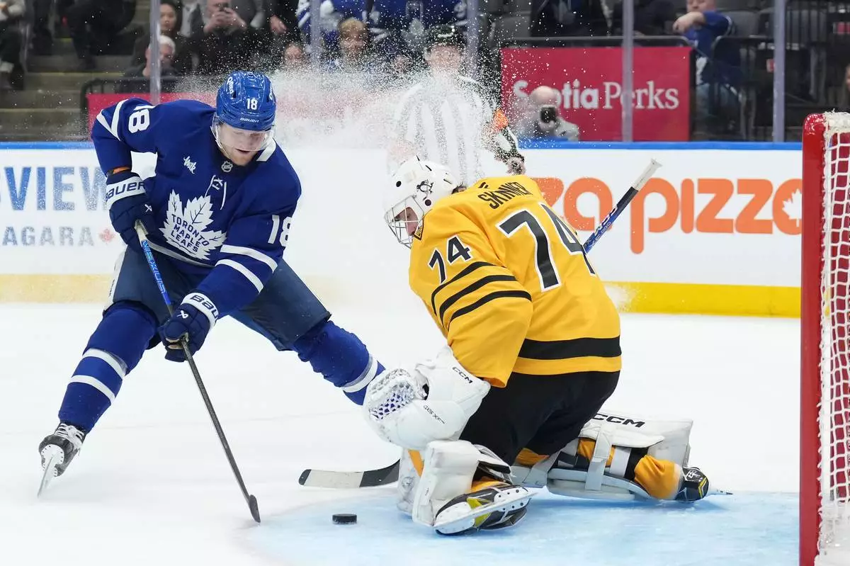 Toronto fired 31 shots on goal while the Penguins registered 32, with Joseph Woll picking up his sixth win in 11 starts. Pittsburgh goalie Stuart Skinner has yet to win in three starts, with 12 goals against since being traded by the Edmonton Oilers on Dec. 15.