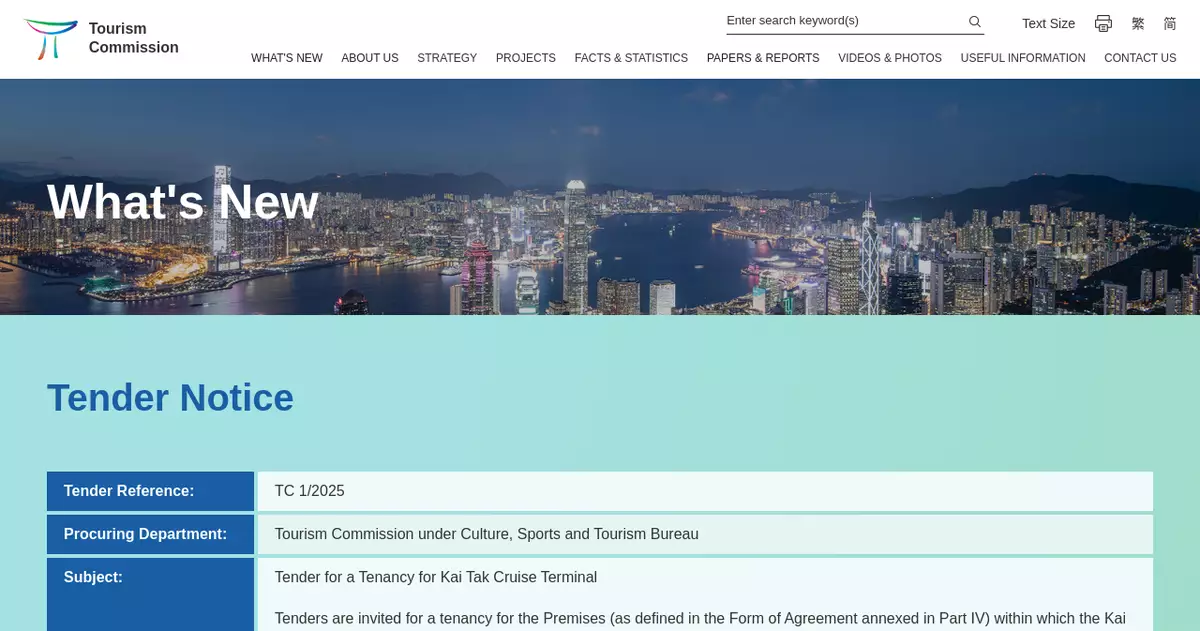 For enquiries, please contact the Tourism Commission by email at ktcttenderenquiry@cstb.gov.hk.