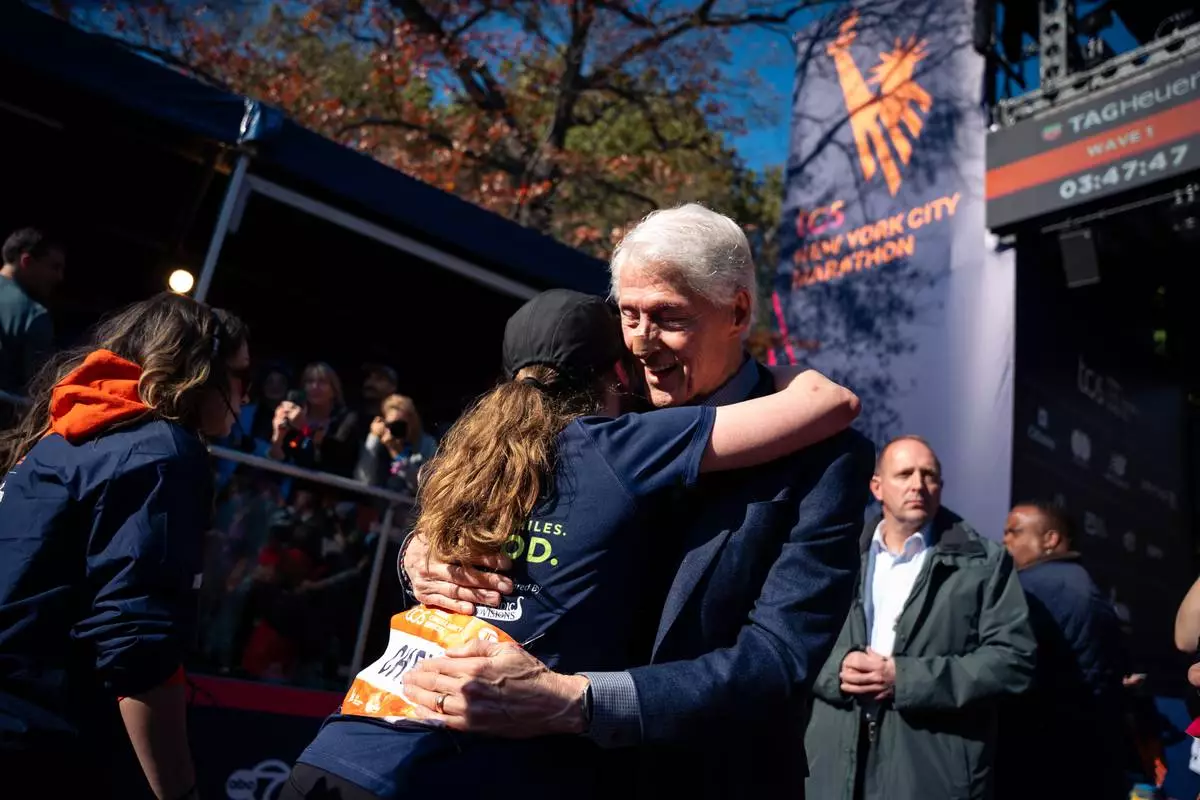 Chelsea Clinton was also one of the finisher, completing the course in just under 3:45. She was greeted at the finish line by her parents — former President Bill Clinton and former Secretary of State Hillary Clinton.