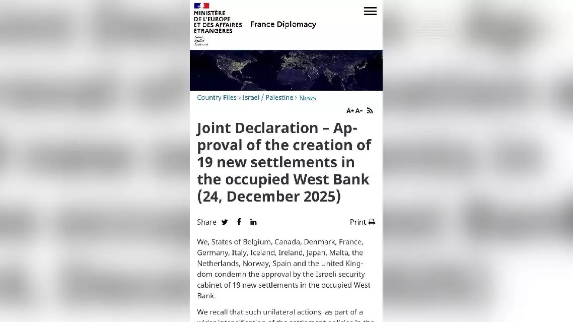 Israeli Foreign Minister Gideon Saar issued a statement on Wednesday evening in response, stating that the Israeli government opposes the condemnations against Israel by some countries and emphasizes that all newly-built settlements in Israel are located on Israeli territory and are in accordance with international law.