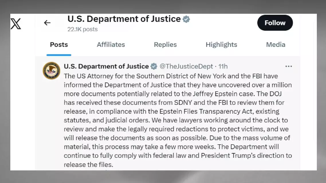 The statement said that the DOJ will release these documents as soon as possible. However, due to the sheer volume of materials, this process may take several more weeks.