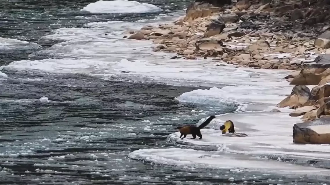By the bank of Make River located in Bainma County, Guoluo Tibetan Autonomous Prefecture, the two small creatures were caught on camera having fun together and chasing each other, with the backdrop of floating ice slowly drifting with currents. The footage happened to be captured by a shutterbug.