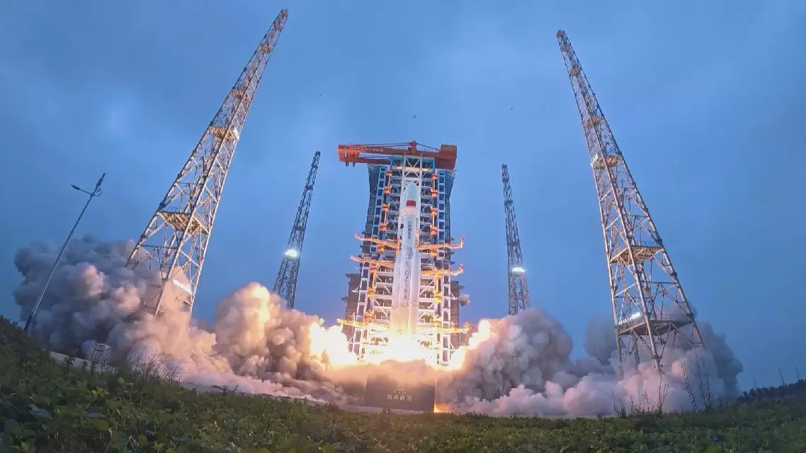 The rocket lifted off at 7:26 from the Hainan commercial spacecraft launch site. It successfully placed the payloads -- the 17th group of low-orbit internet satellites -- into their preset orbit.