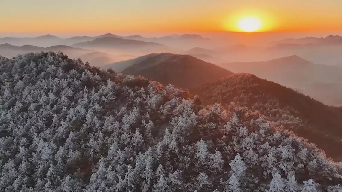 Mountains shine in breathtaking rime ice in Fujian
