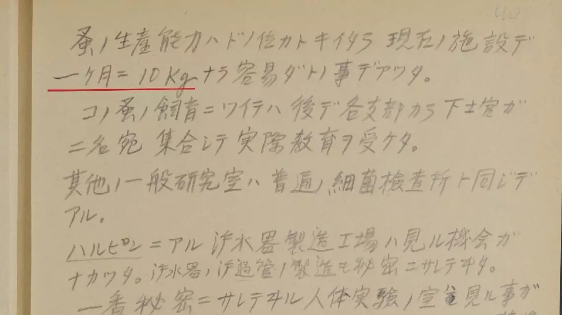 One key document is a handwritten confession by Kato Tsunenori, a commander of the Hailar branch of Unit 731, who described his direct involvement in producing plague-infected fleas to meet the unit's operational needs for germ warfare.