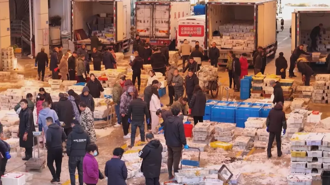 At a large aquatic product trading center in the county, refrigerator trucks were waiting in a long queue. Since mid-December, the daily trading volume of aquatic products here has reached about 50 tons, an increase of nearly 20 percent compared to usual, with places of destination covering multiple provinces across China.