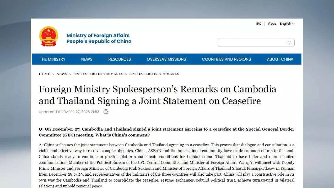 The spokesperson stressed that China will continue to play a constructive role, in its own way, in helping Cambodia and Thailand consolidate the ceasefire, resume exchanges, rebuild political trust, improve bilateral relations, and safeguard regional peace.
