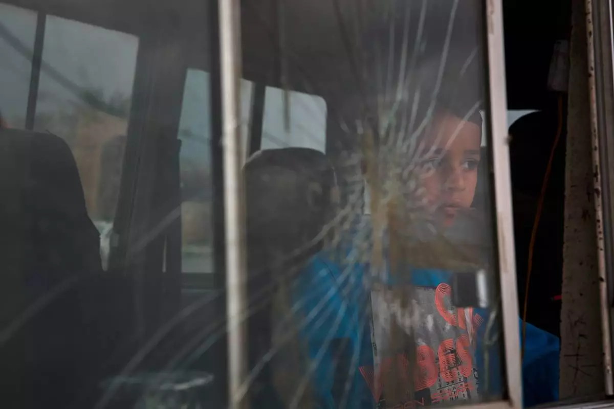 A boy who fled with his family following Israeli strikes in southern Lebanon sits inside the van they are using as shelter in Sidon, Lebanon, Thursday, April 2, 2026. (AP Photo/Emilio Morenatti)