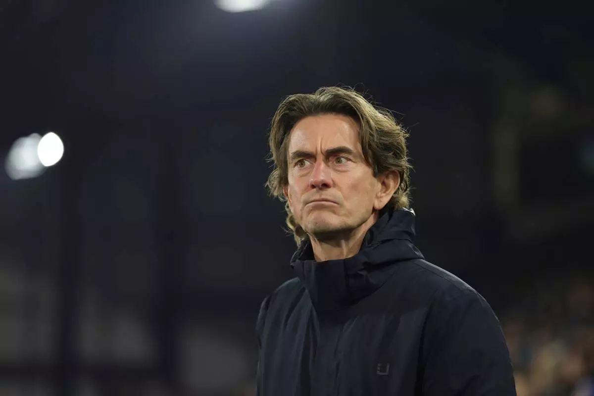 Tottenham's head coach Thomas Frank waits for the start of the English Premier League soccer match between Crystal Palace and Tottenham Hotspur in London, Sunday, Dec. 28, 2025. (AP Photo/Ian Walton)