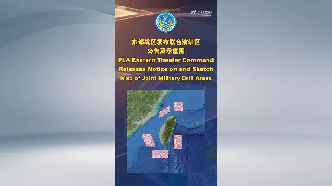 The Chinese People's Liberation Army (PLA) Eastern Theater Command on Monday morning released a notice on and a sketch map of the areas of joint military drills around the Taiwan Island.