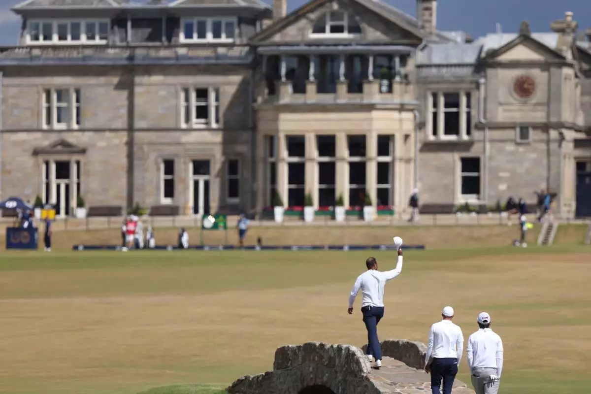FILE - Tiger Woods of the U.S. gestures to the crowd at the end of his second round of the British Open golf championship on the Old Course, in St. Andrews, Scotland, Friday July 15, 2022. (AP Photo/Peter Morrison, File)