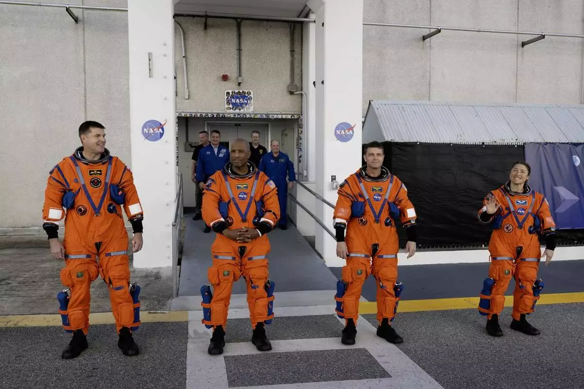 Artemis II crew L-R: Mission Specialist Jeremy Hansen, Pilot Victor Glover, Commander Reid Wiseman, and Mission Specialist Christina Koch